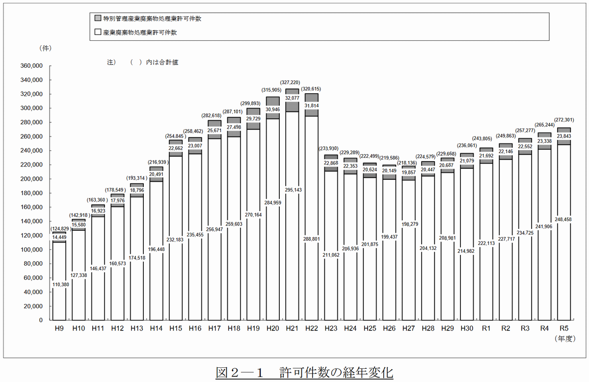 事業者数ではなく「許可件数」ですので、一社で複数の自治体の許可を取得した場合、その許可件数がすべてカウントされることになります。